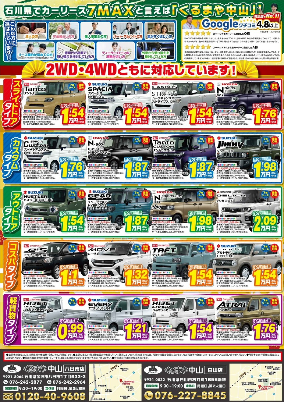 そのため実際の月々は割高にはなりません。設定残価はリースアップ時の売却予定価格ですので、7MAXでは、人気車種に絞って高い残価を設定しました。